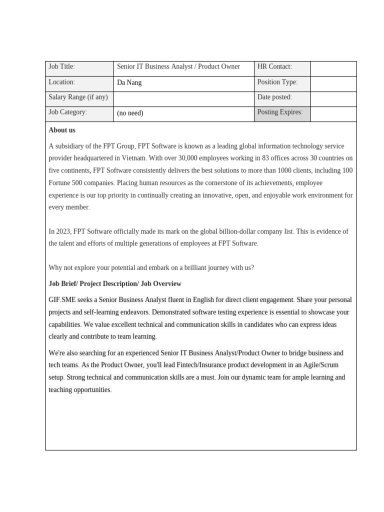 FPT Software - GIF SME - Senior IT BA - PO | PDF | Scrum (Software ...