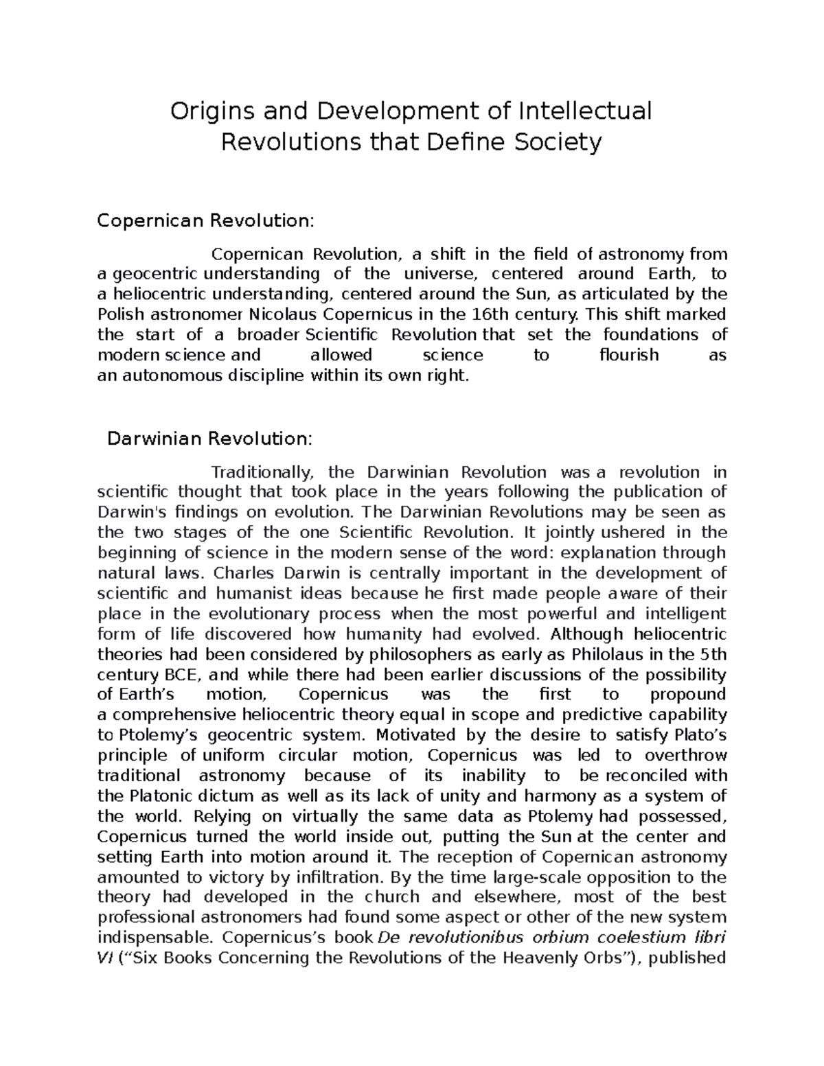 Origins and Development of Intellectual Revolutions that Define Society ...