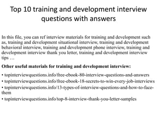 Top 10 training and development interview questions with answers | PPTX