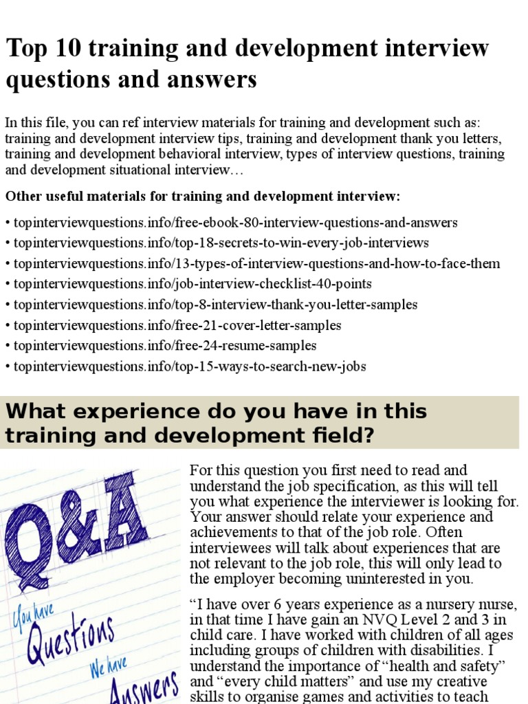 Top 10 Training and Development Interview Questions and Answers | PDF ...