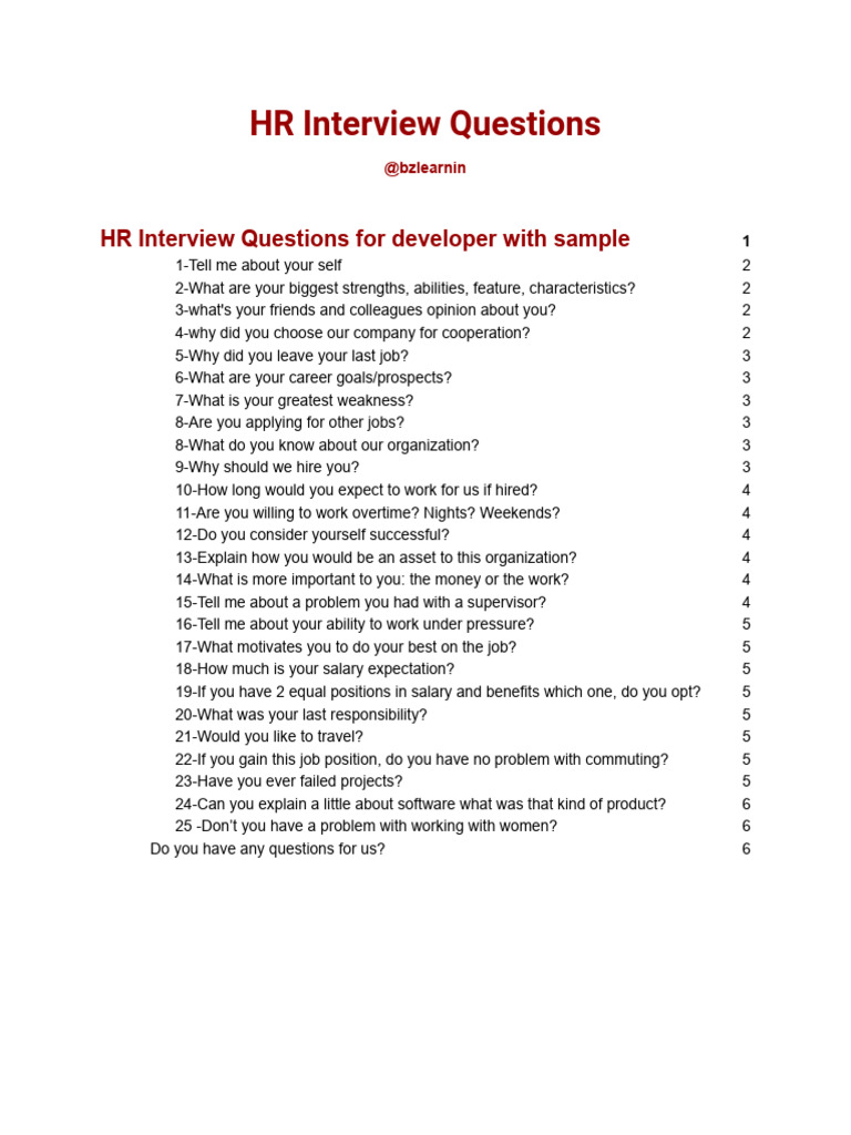 HR Interview Questions For Developer With Sample | PDF | Social Psychology