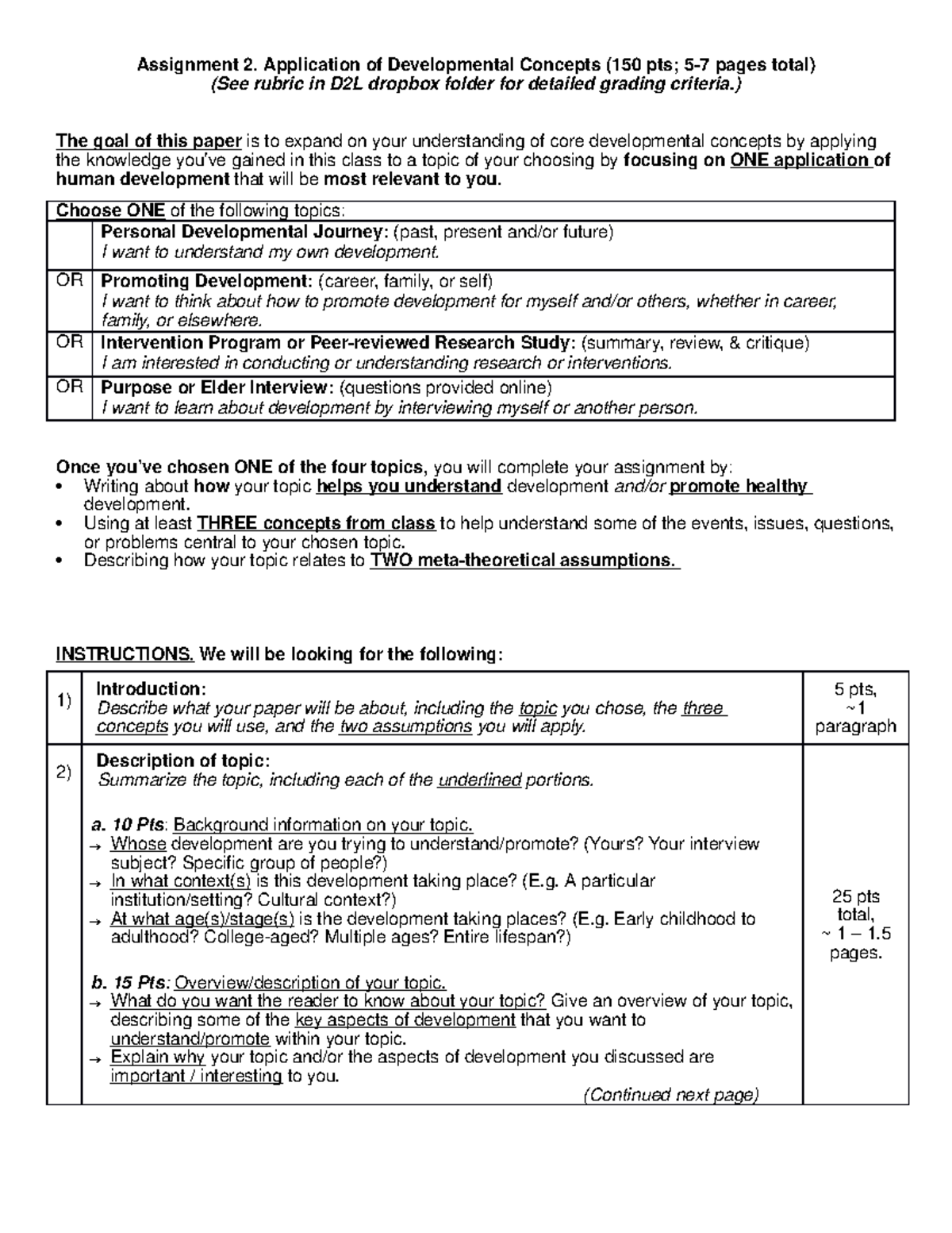 Assignment 2 description - Assignment 2. Application of Developmental ...
