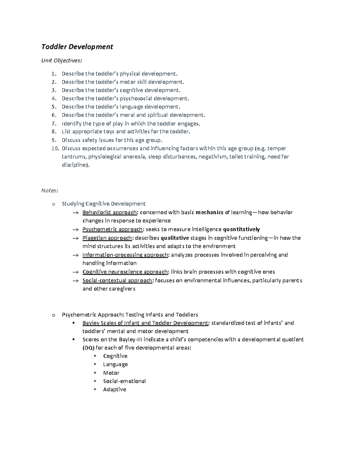 Lifespan- Toddler Development - Toddler Development Unit Objectives ...