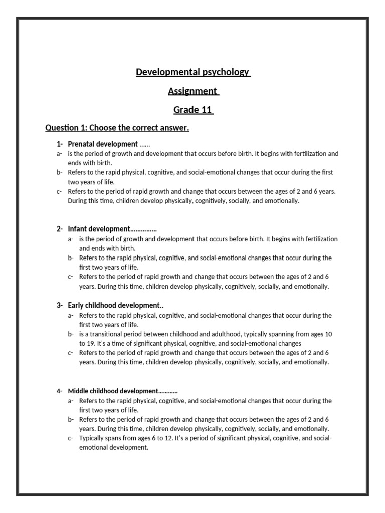 Developmental Psychology Assignment | PDF | Adolescence | Child Development