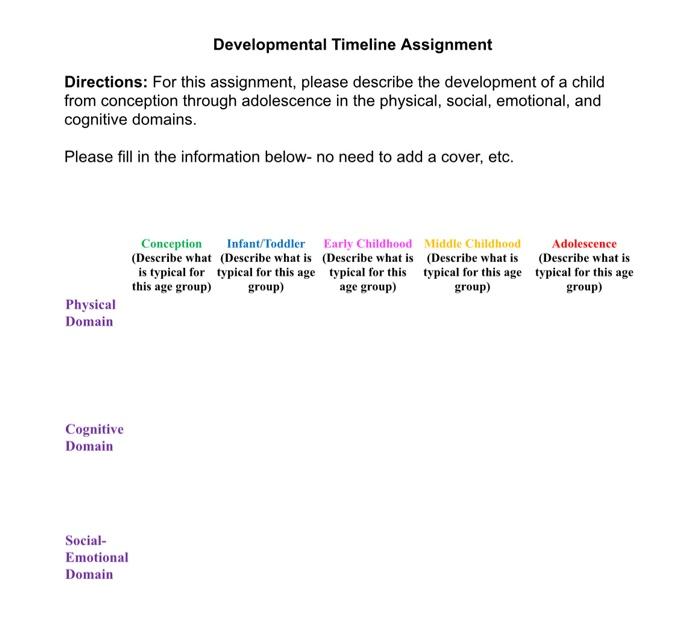 Solved Developmental Timeline Assignment Directions: For | Chegg.com