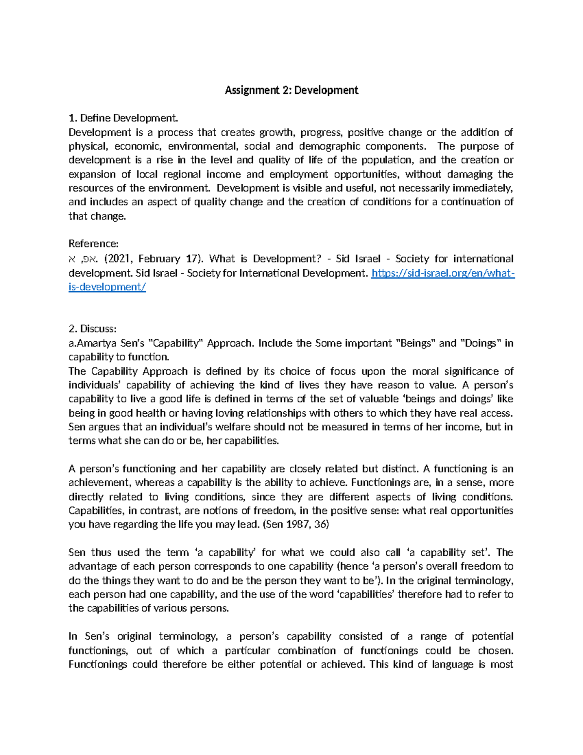 Assignment 2: Understanding Development and Its Core Values - Studocu