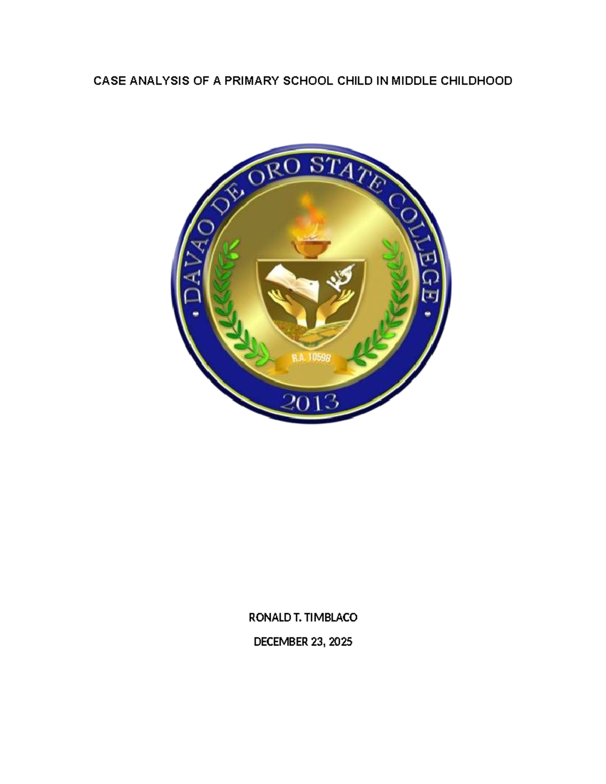 CASE STUDY OF A GRADE 3 CHILD IN MIDDLE CHILDHOOD (EDU 101) - Studocu