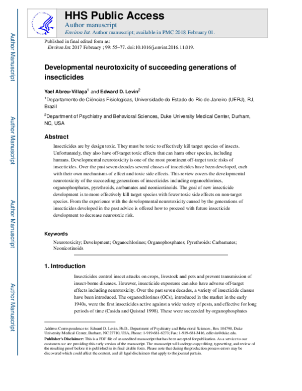 (PDF) Developmental neurotoxicity of pyrethroid insecticides: critical ...