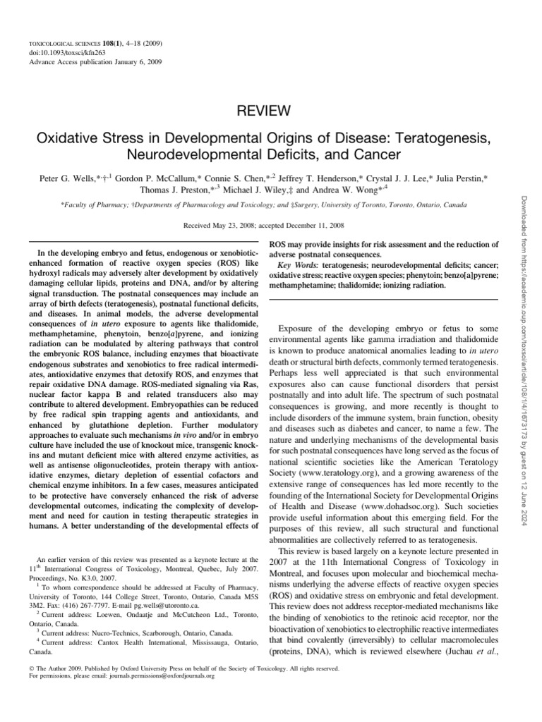 Oxidative Stress in Developmental Origins of Disease | PDF | Dna Repair ...