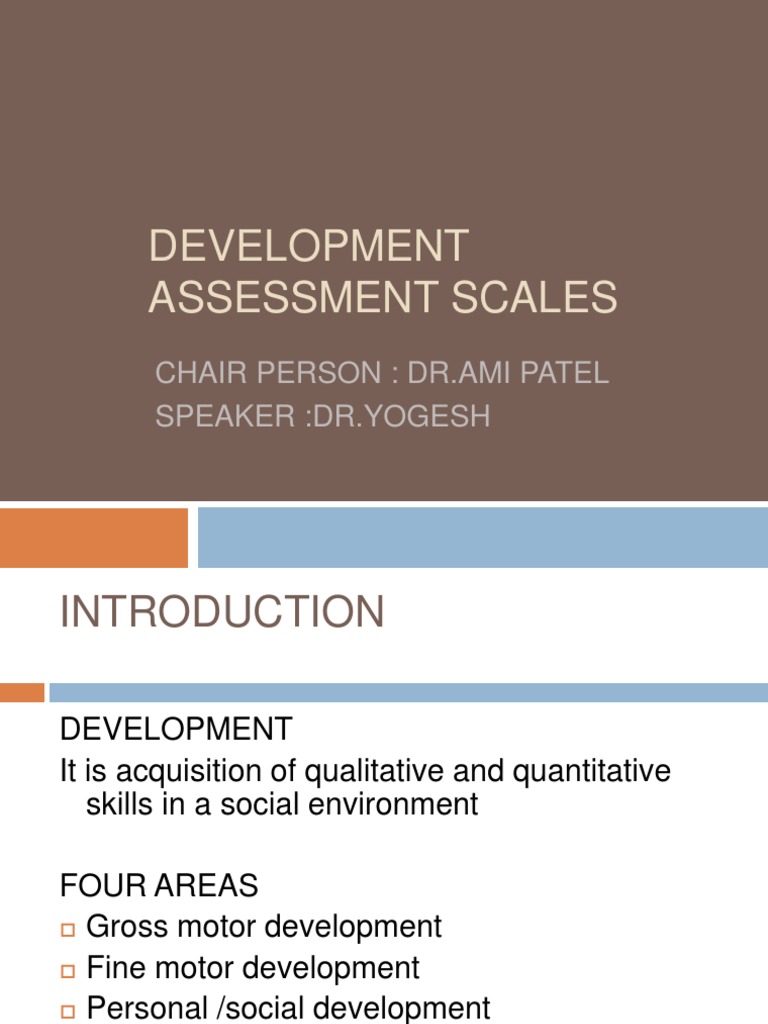 Development Assessment Scales: Chair Person: DR - Ami Patel Speaker:Dr ...
