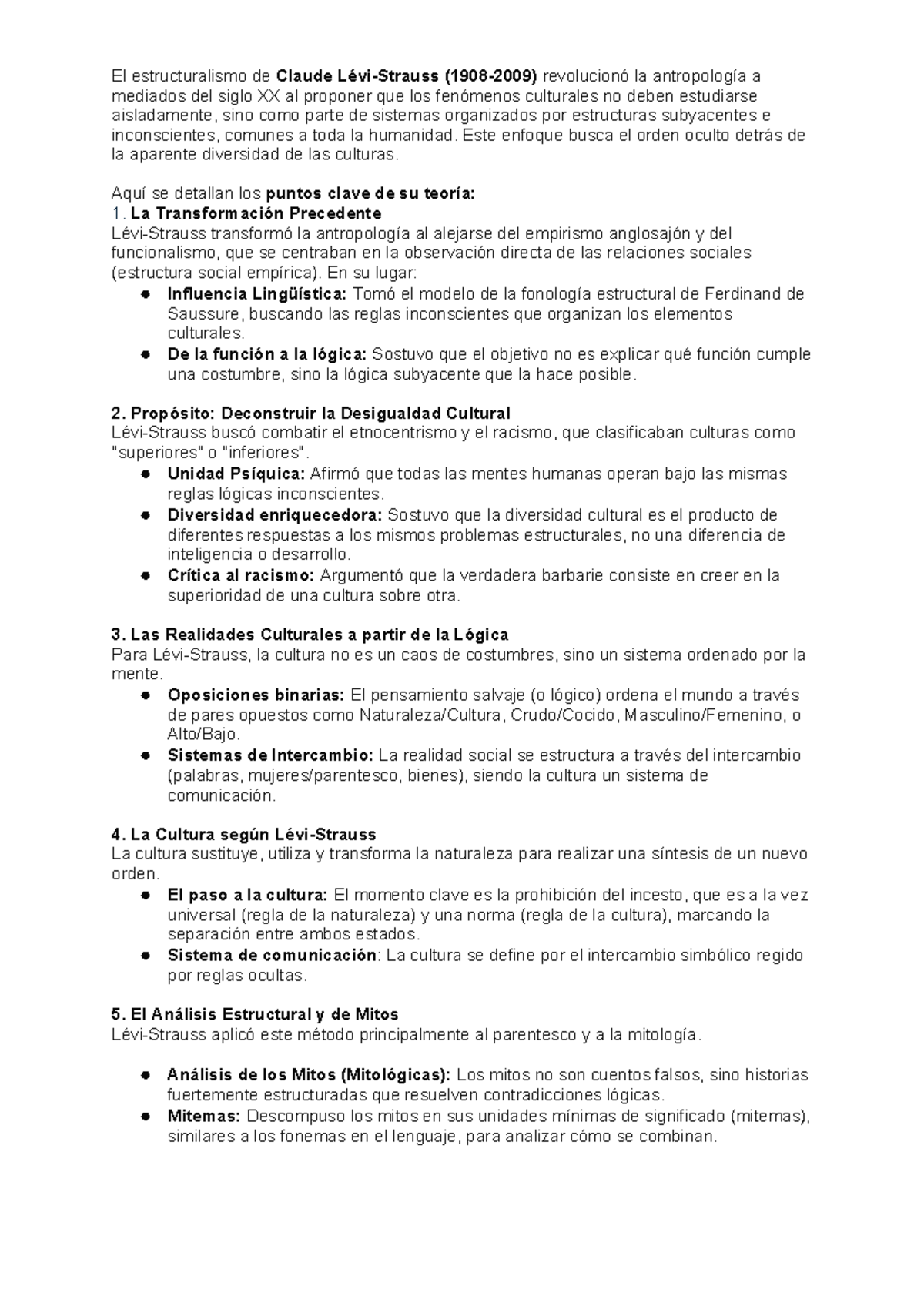 El Estructuralismo de Claude Lévi-Strauss: Teoría y Críticas - Studocu