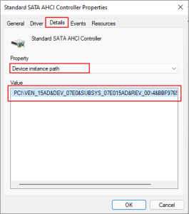 Select Device Instance Path from the Properties dropdown.