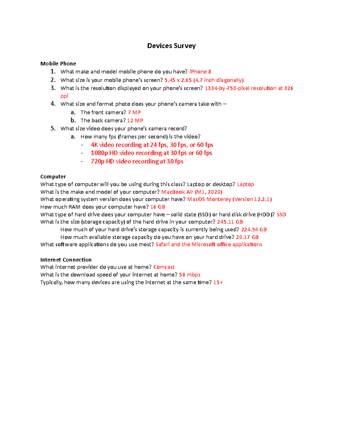 Devices Survey - Devices Survey Mobile Phone 1. What make and model ...