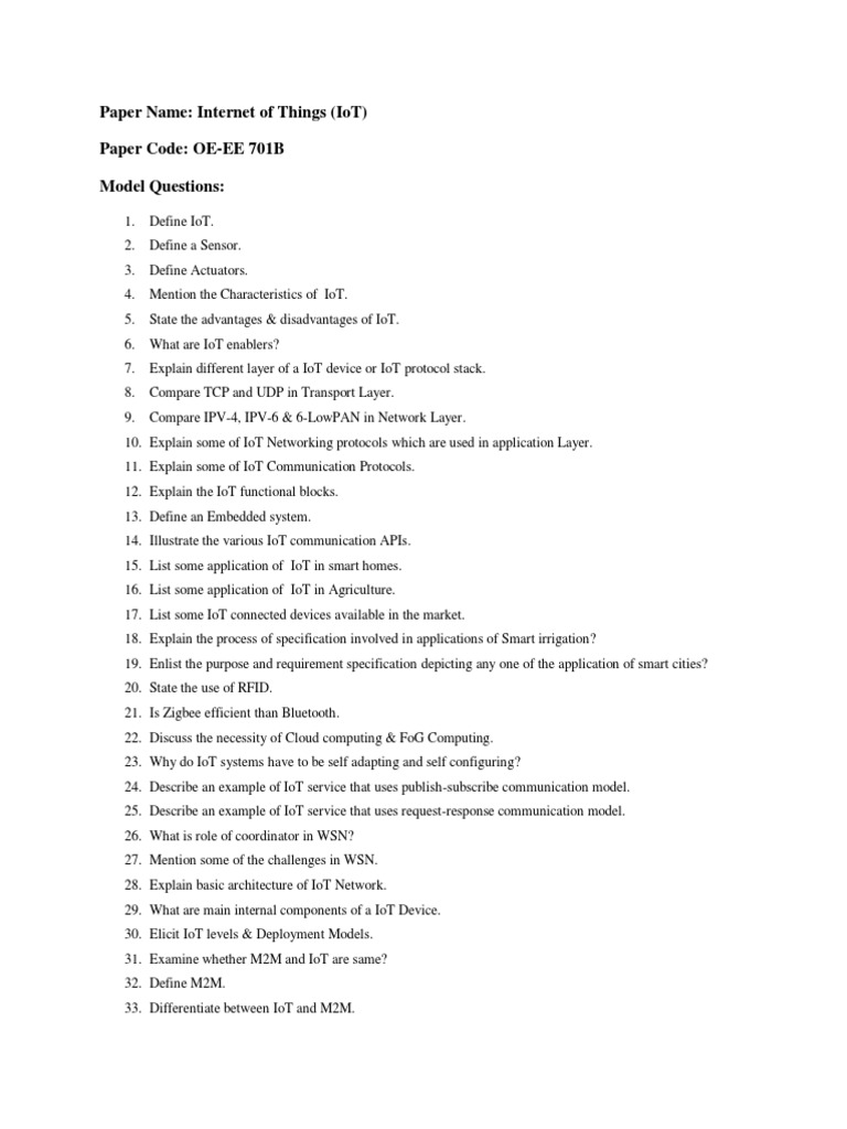 IoT and M2M Model Questions Guide | PDF | Internet Of Things | Wireless ...