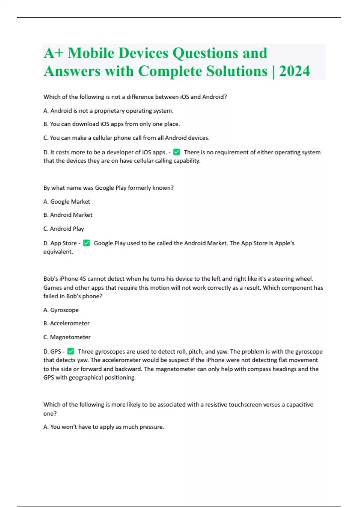 A+ Mobile Devices Questions and Answers with Complete Solutions | 2024 ...