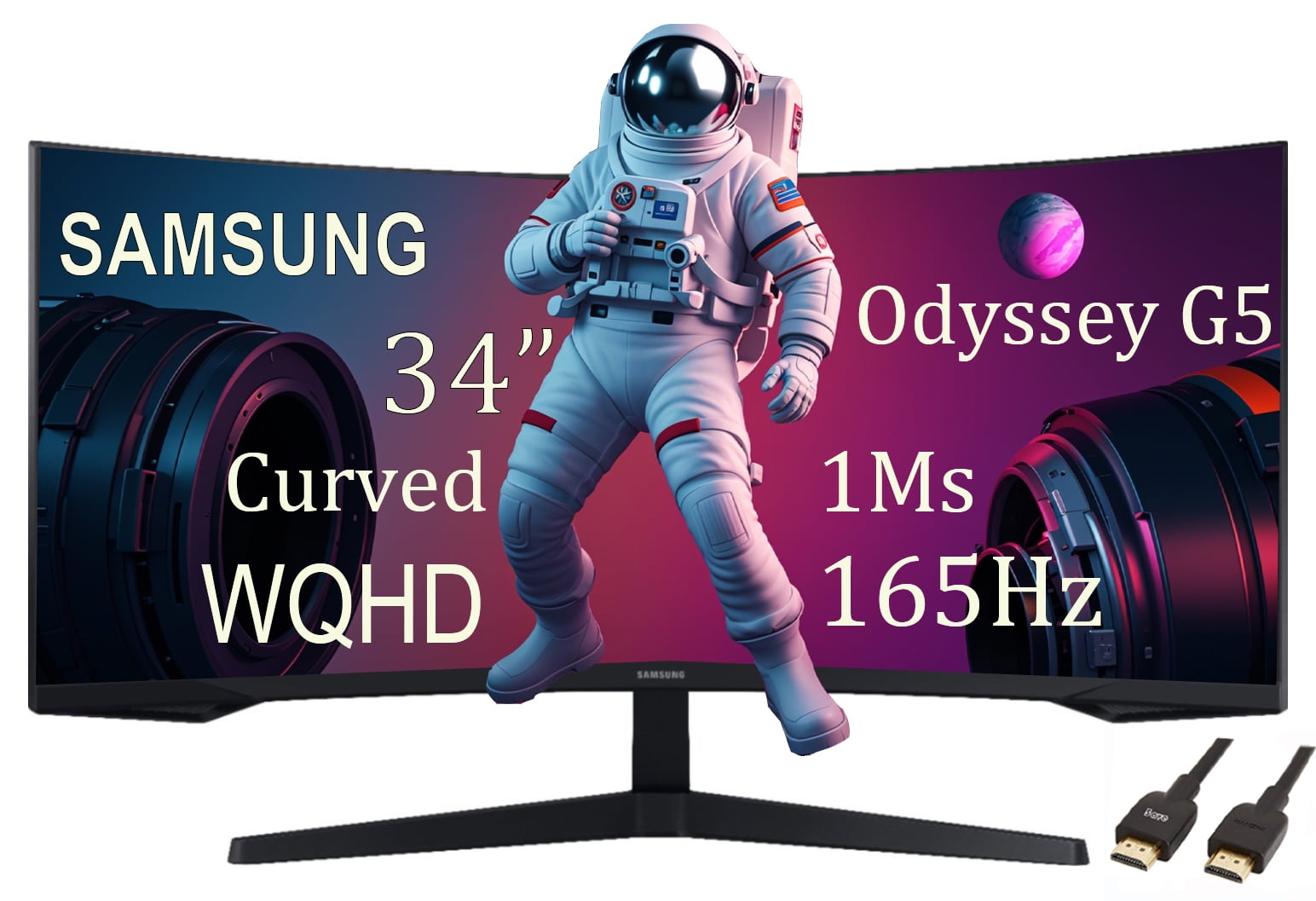 SAMSUNG 34" Odyssey G5 Ultra-Wide Gaming Monitor, 1000R WQHD Curved ...