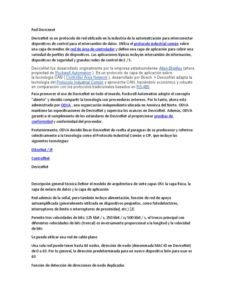 DeviceNet: Red Automática Industrial | PDF | Red de computadoras ...
