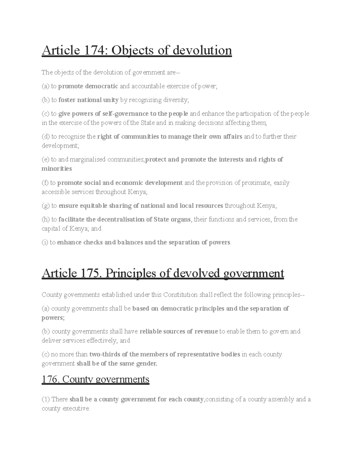 Devolution - good - Article 174: Objects of devolution The objects of ...