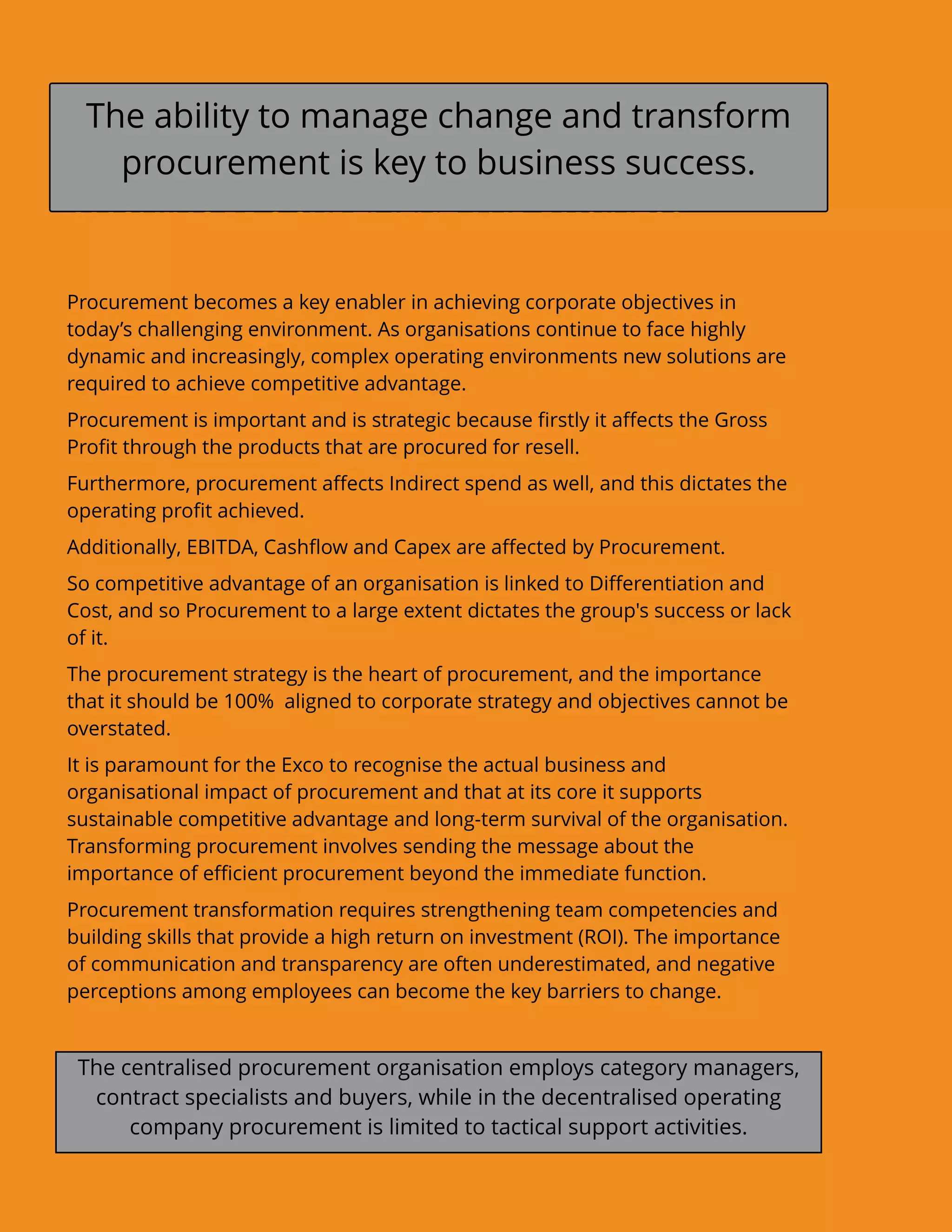 Procurement Transformation Strategy: Decentralised to Centralised | PDF