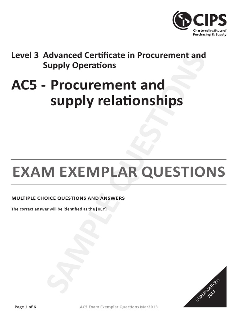 AC5 Procurement Exam Sample Questions | PDF | Procurement | Test ...