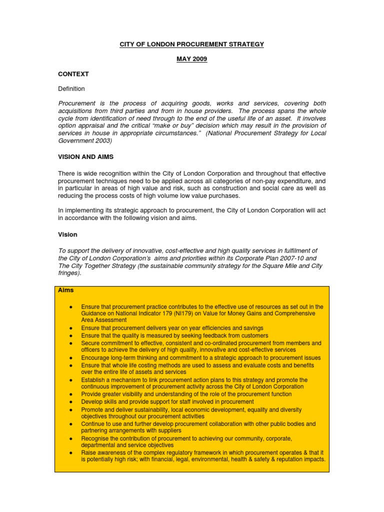 City of London Procurement Strategy MAY 2009 Context | PDF ...