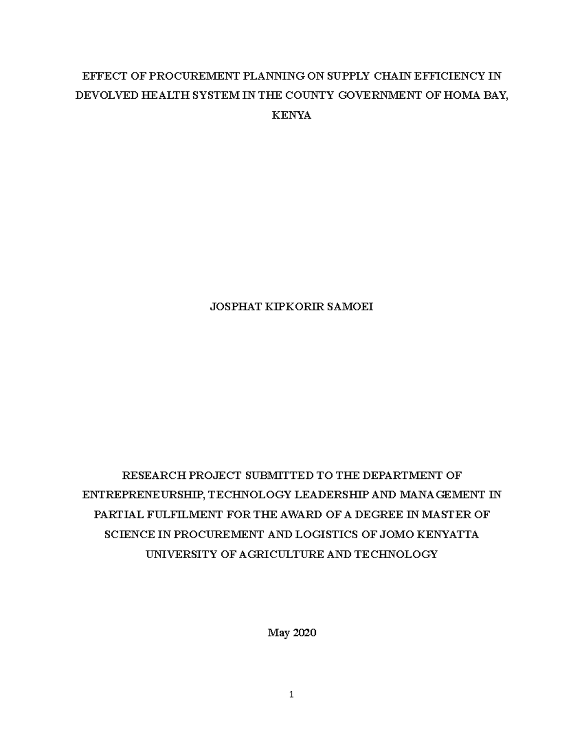 EFFECT OF PROCUREMENT PLANNING ON SUPPLY CHAIN EFFICIENCY IN DEVOLVED ...