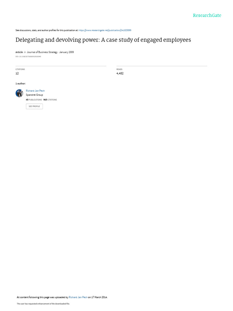 Delegating and Devolving Power: A Case Study of Engaged Employees | PDF ...