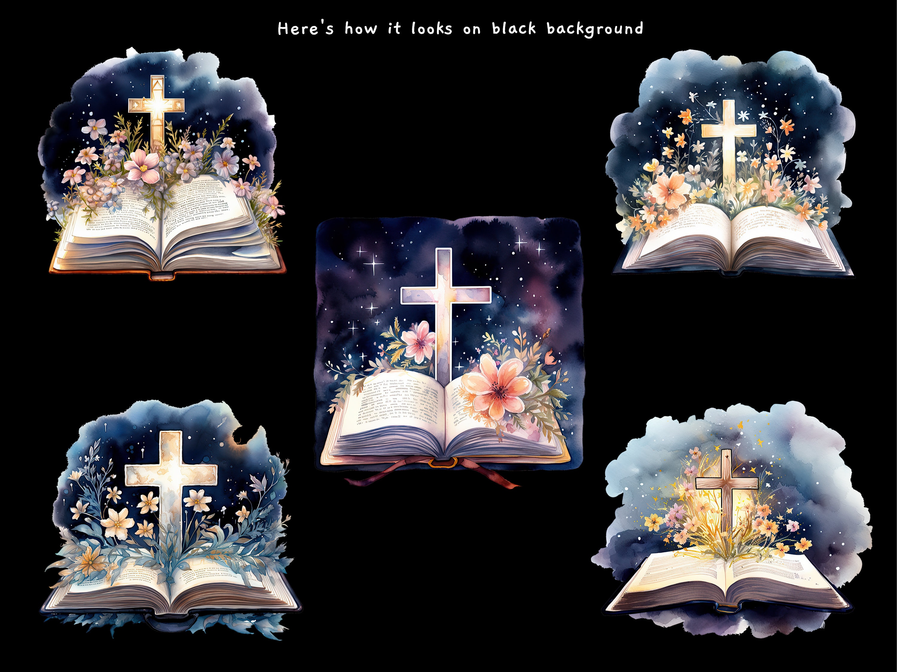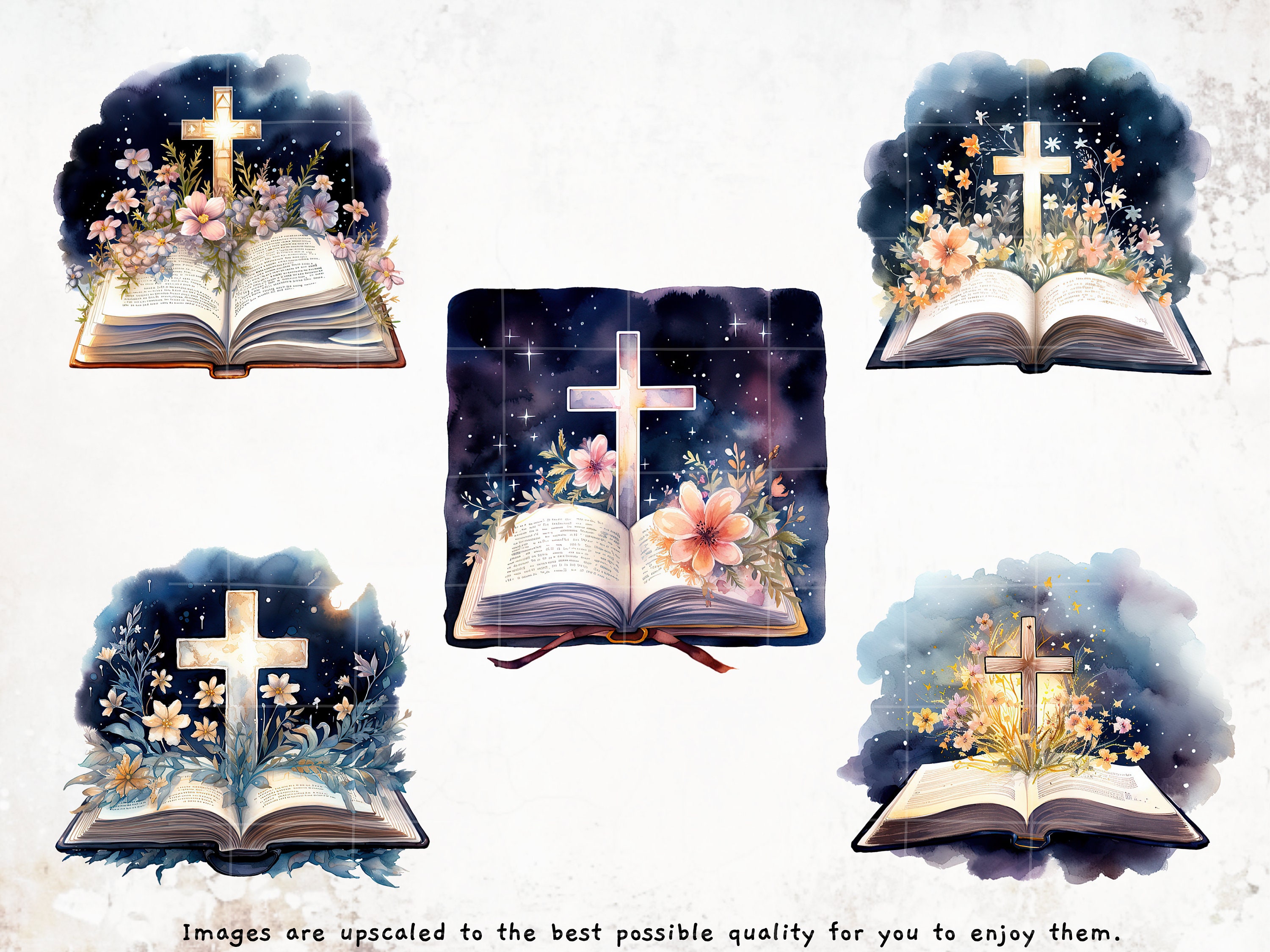 Bible and Cross Clipart Floral Watercolor Christian Graphics for ...