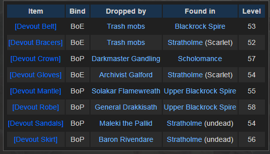 Vestments of the Devout - Item Set - Classic World of Warcraft