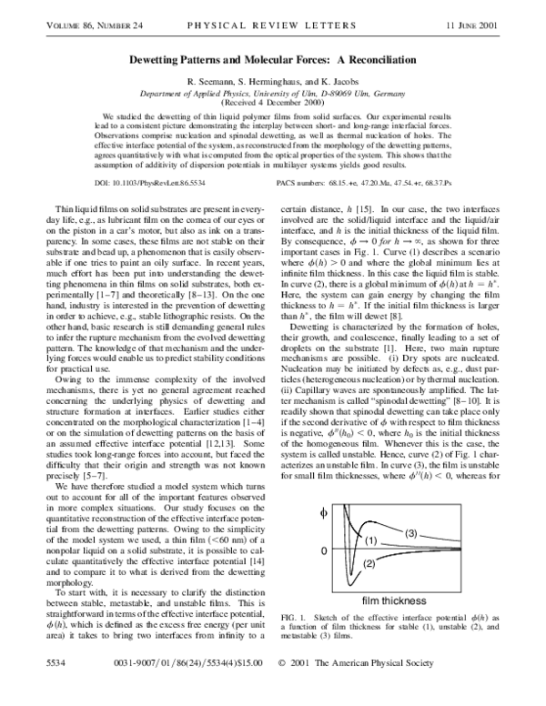 (PDF) Dewetting Patterns and Molecular Forces: A Reconciliation