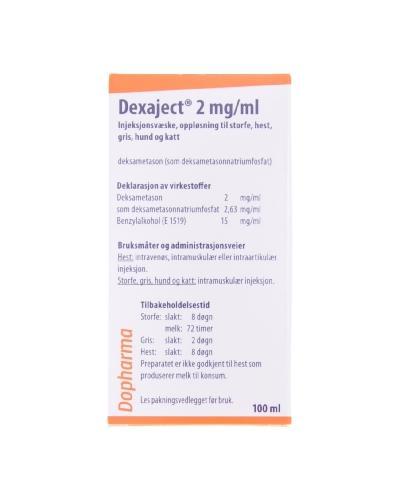 Dexaject vet 2 mg/ml injeksjonsvæske, oppløsning hetteglass 100 ml ...