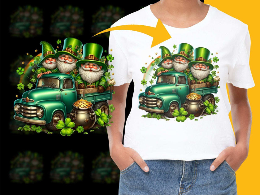 Fun St Patricks Day Leprechaun PNG File with Shamrocks Truck | Designs ...