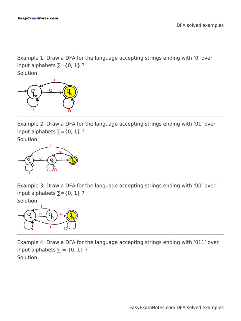 DFA Examples with Solutions | PDF | String (Computer Science ...