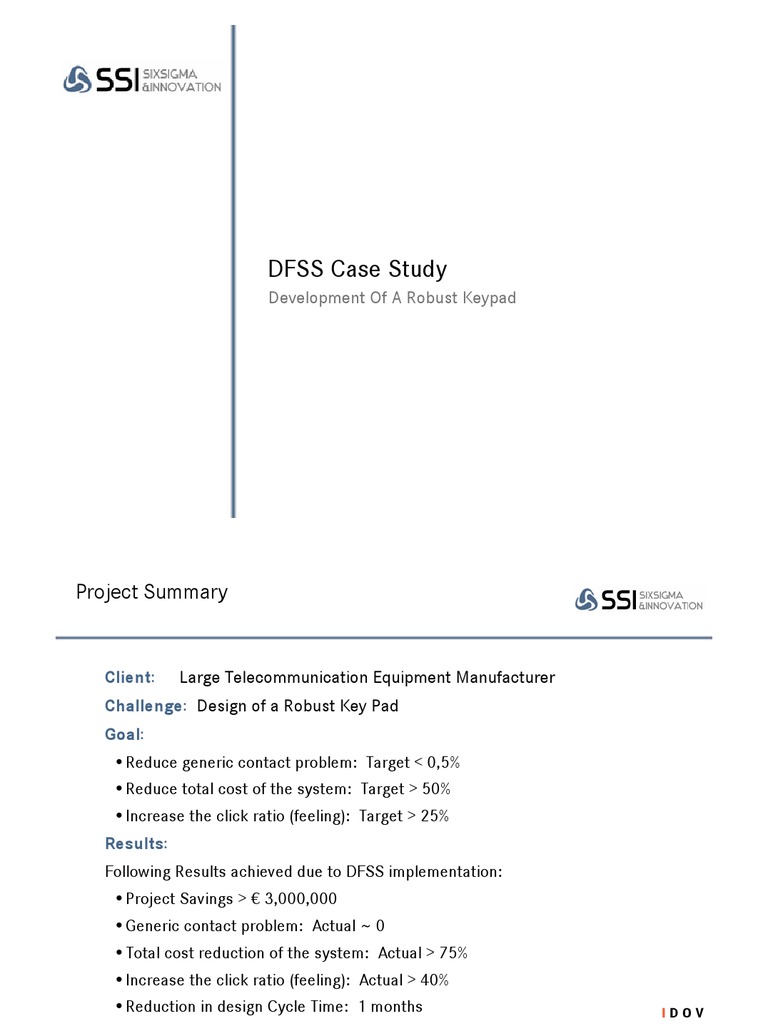 SSI New Generation DFSS Case Study | PDF | Design For Six Sigma | Six Sigma