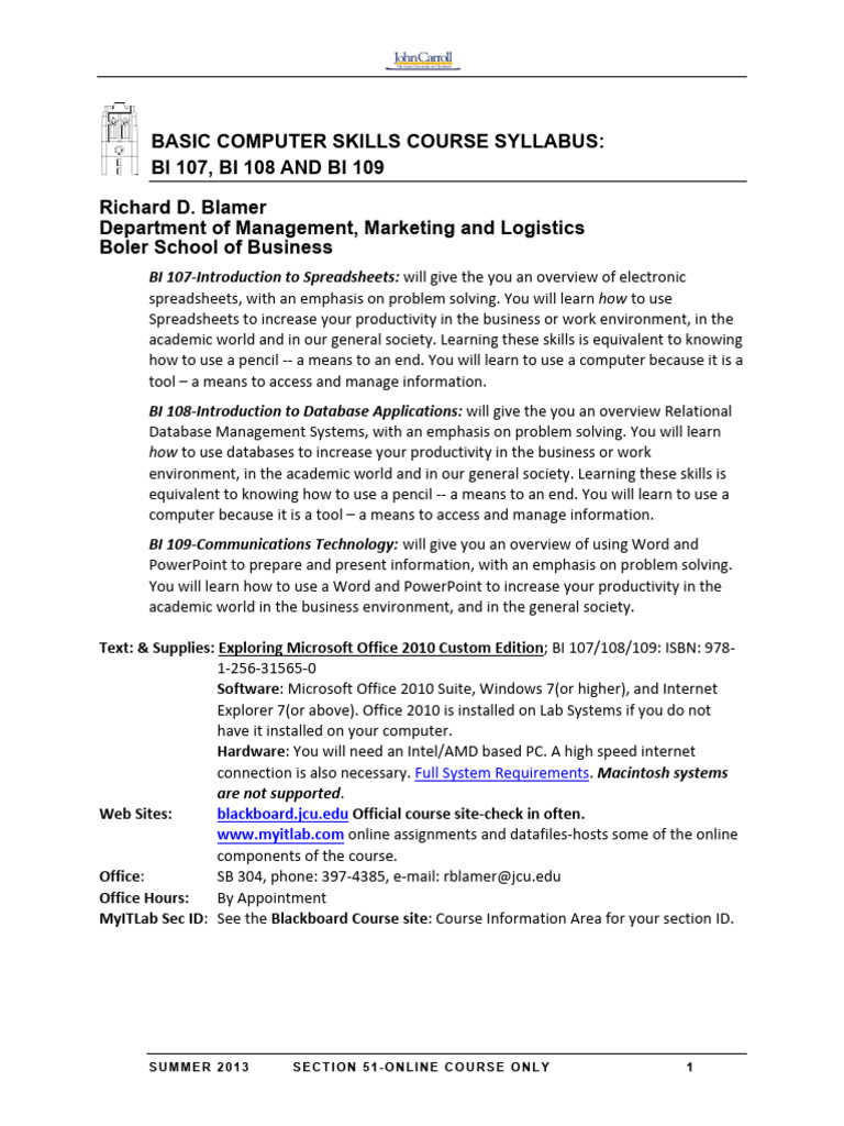 Basic Computer Skills Course Syllabus | PDF | Personal Computers ...