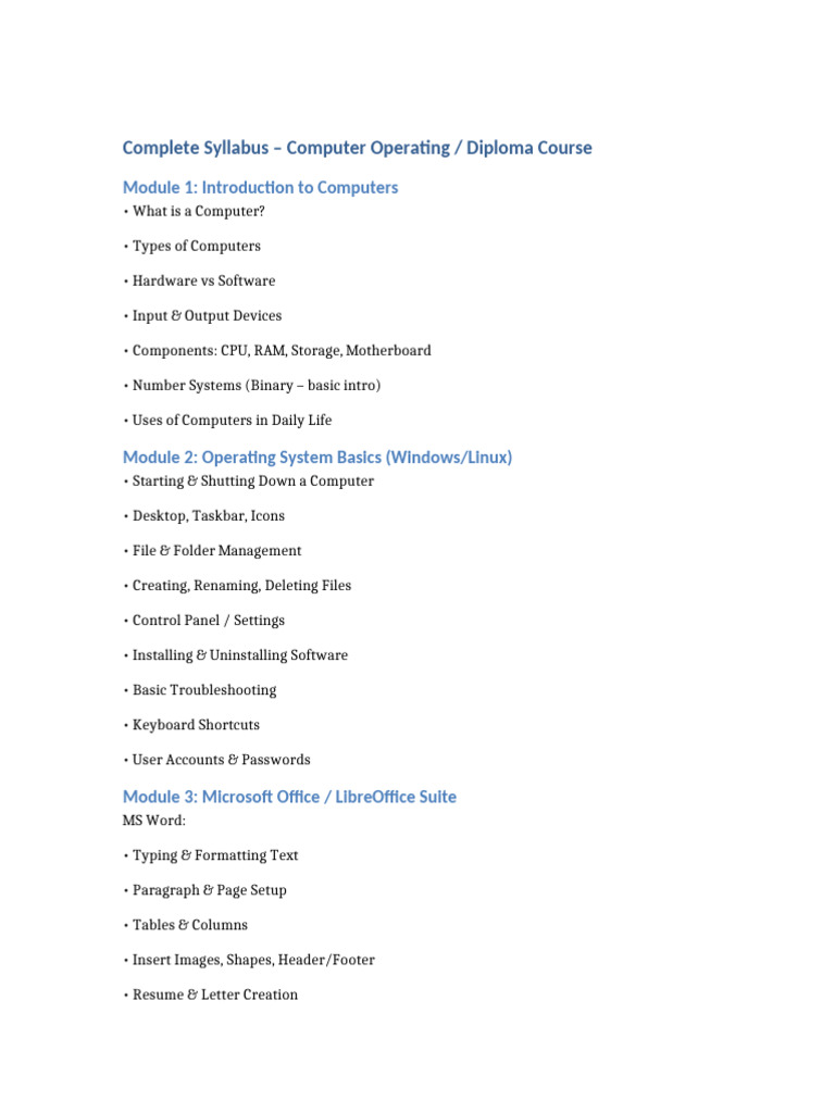 Computer Basic Syllabus | PDF