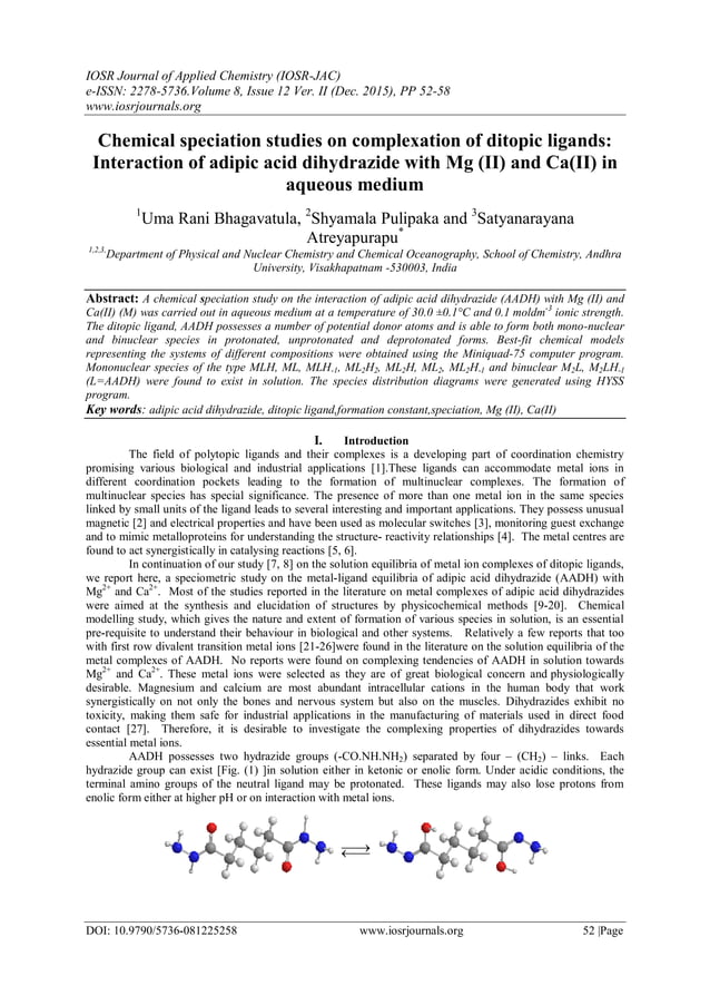 Chemical speciation studies on complexation of ditopic ligands ...