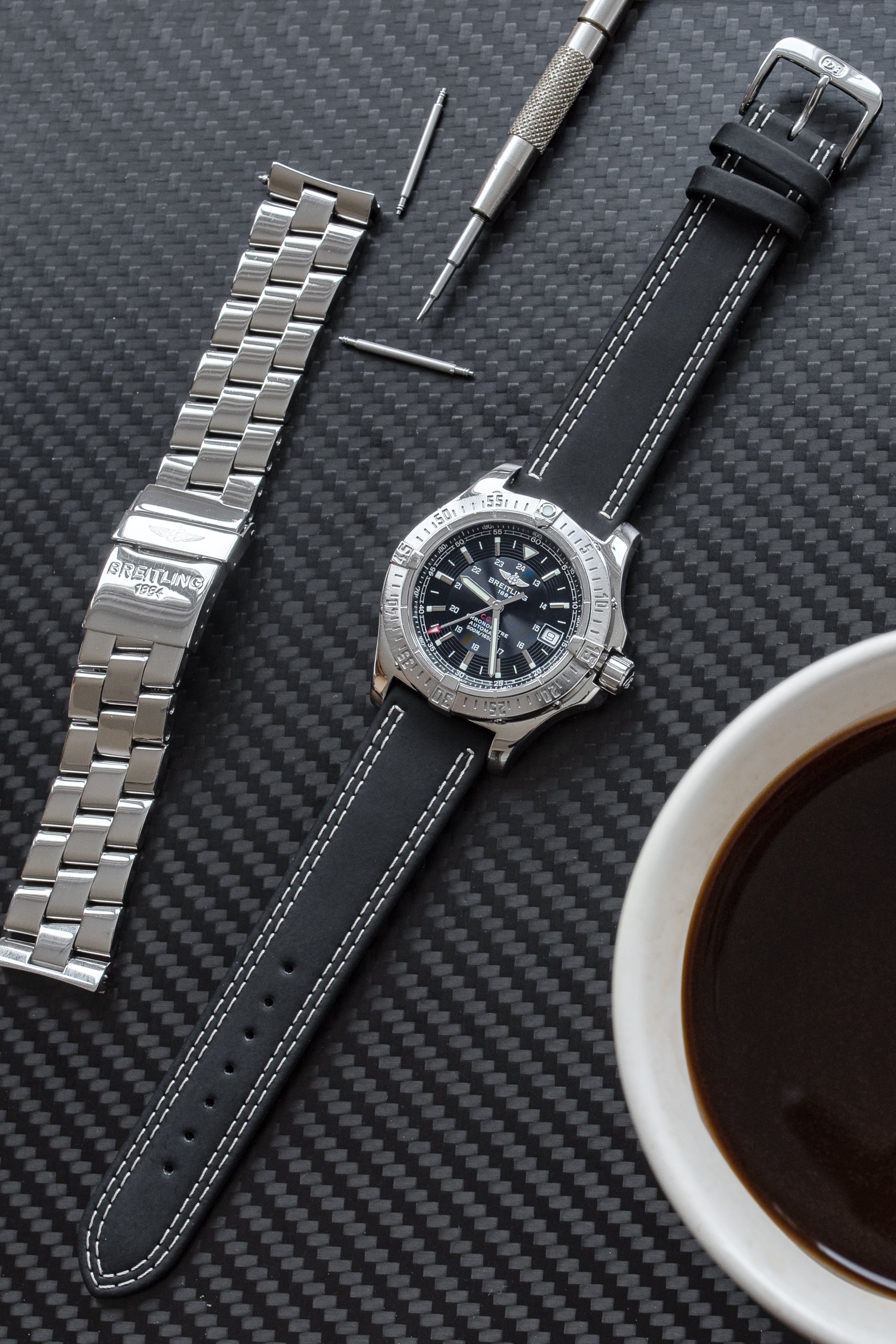 Di-Modell COLORADO Rubber-Coated Leather Watch Strap in BLACK/WHITE ...