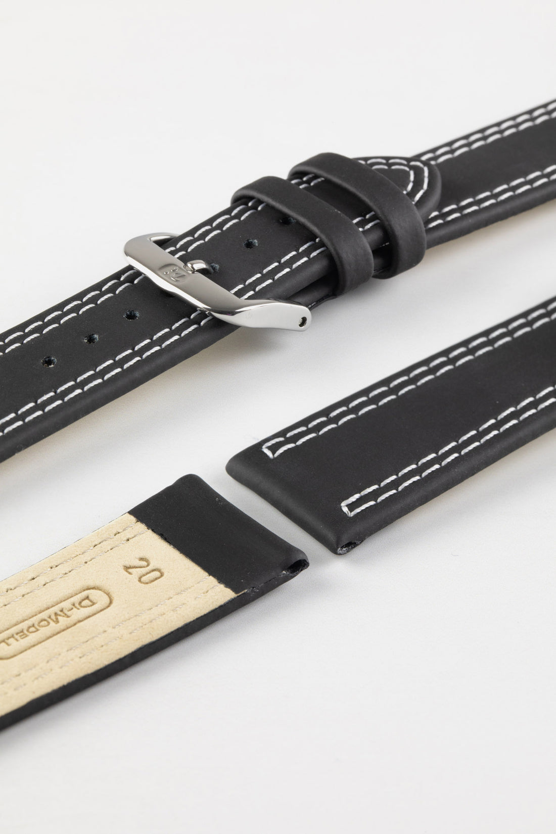 Di-Modell COLORADO Rubber-Coated Leather Watch Strap in BLACK/WHITE