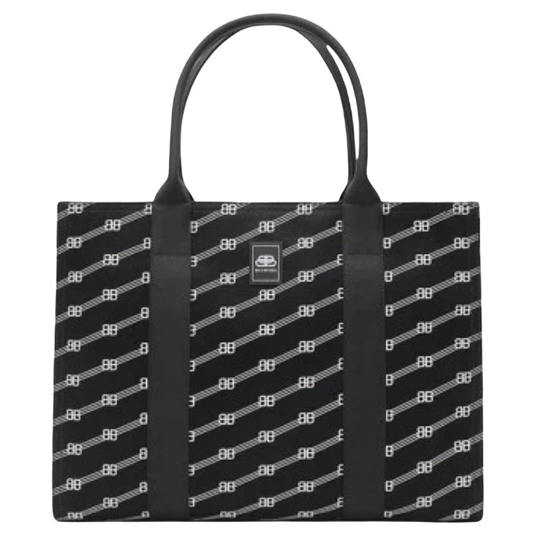 NEW Balenciaga Black Large Diagonal Monogram BB Logo Canvas Tote ...