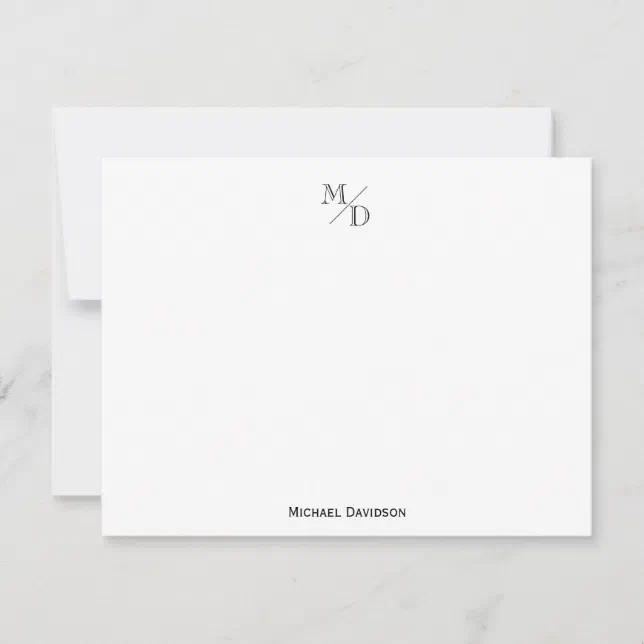 Classic Modern 2 Monogram Initial Diagonal Line Note Card | Zazzle.com