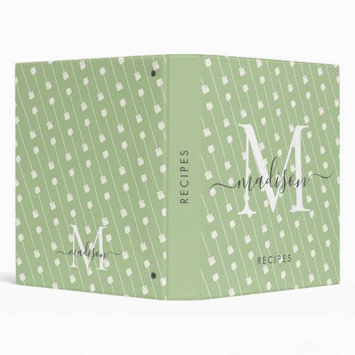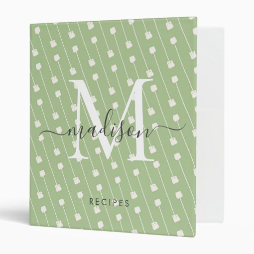 Geometric Diagonal Squares Green Monogram Script 3 Ring Binder | Zazzle
