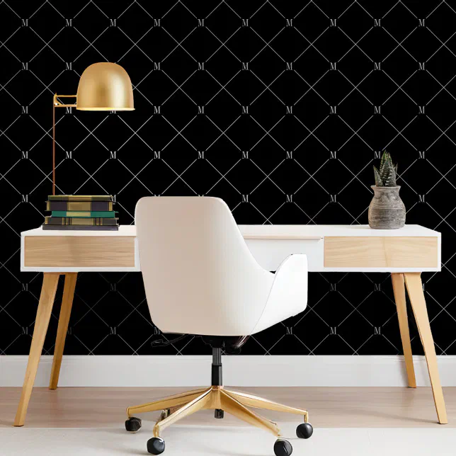 Minimal Black Diagonal Checkered Monogram Pattern Wallpaper | Zazzle
