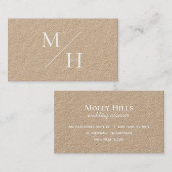Minimalist Modern Diagonal Initials Monogram Kraft Business Card | Zazzle