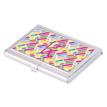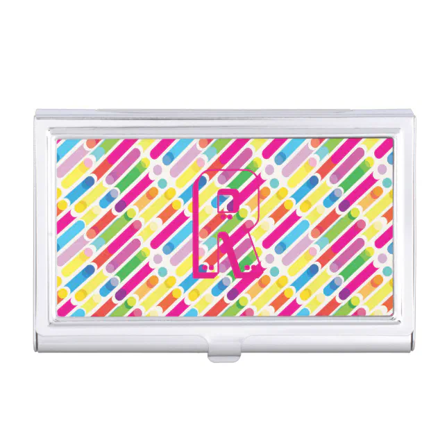 Monogram Rainbow Diagonal Lines Pattern Pop Art Business Card Case | Zazzle