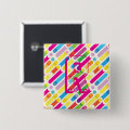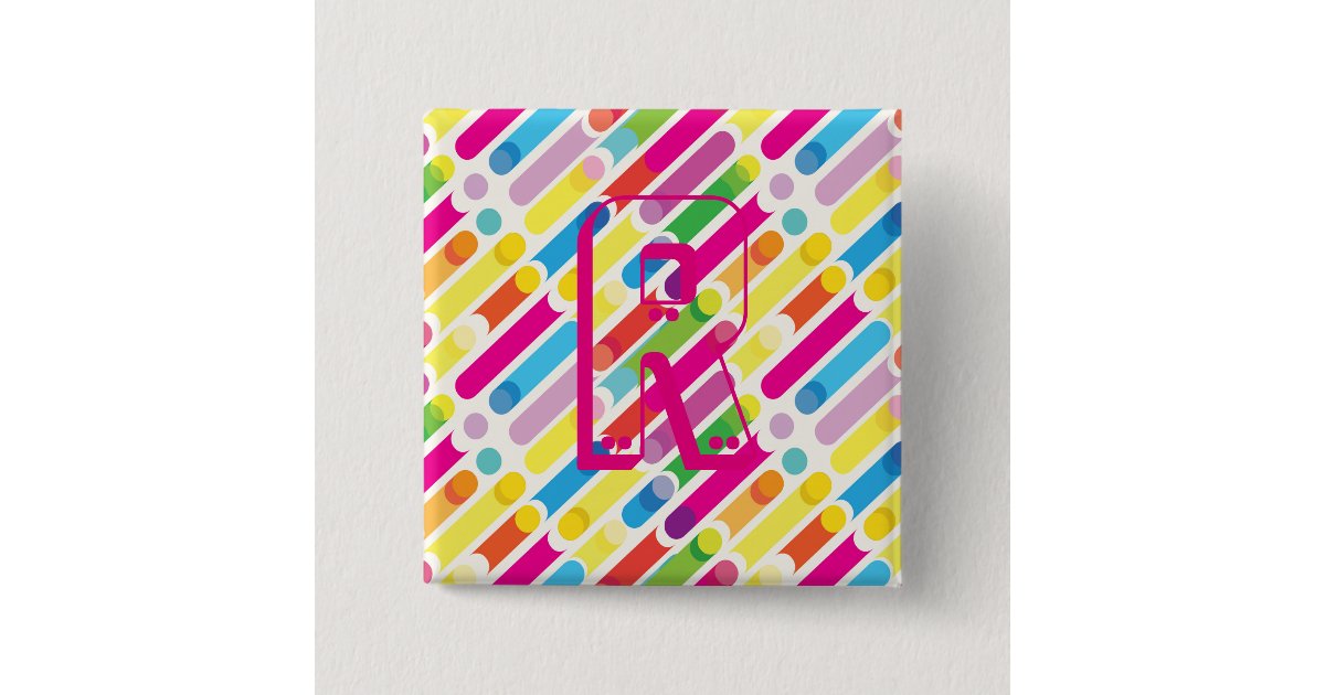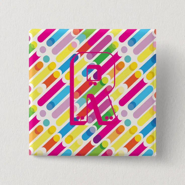 Monogram Rainbow Diagonal Lines Pattern Pop Art Button | Zazzle