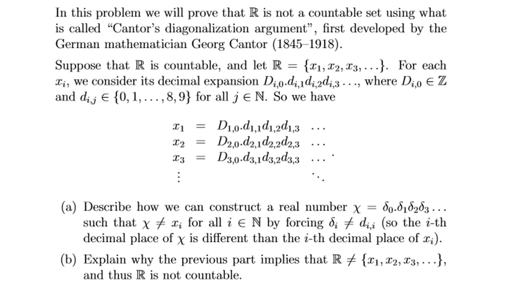 Solved Cantor's diagonal argument shows that the set of real | Chegg.com