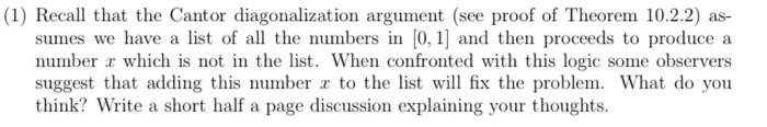 Solved (1) Recall that the Cantor diagonalization argument | Chegg.com