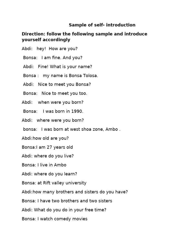 Introducing Yourself Dialogue Example | PDF