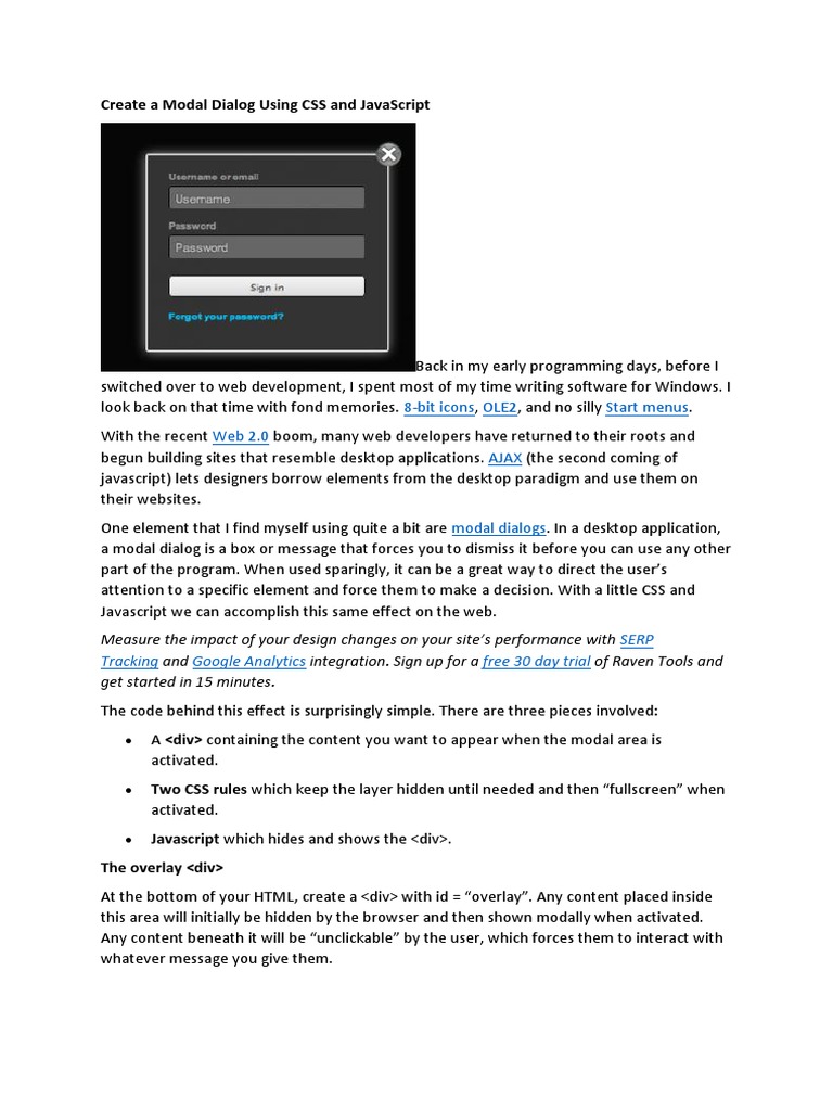 Create A Modal Dialog Using CSS and JavaScript | PDF | Cascading Style ...